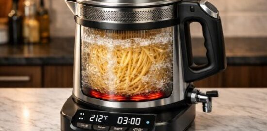 パスタを茹でて湯切りも行う家庭用パスタ茹で機|米Innovo Conceptsが米国特許取得