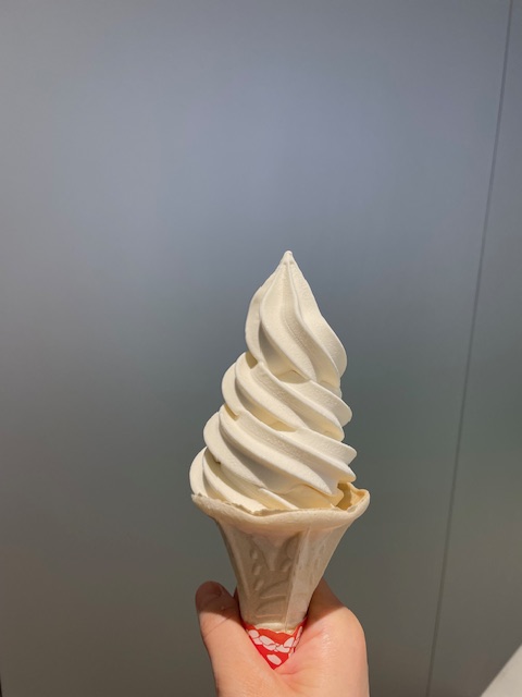 乳・卵不使用のソフトクリームを提供。コーンを設置して、ソフトクリームが押出しされるプロセスを自動化した「未来のソフトクリームマシーン」を体験できる。マシーンで提供するものも、乳・卵不使用のソフトクリーム。実際に食べてみると、乳・卵不使用とはわからない完成度の高さだった。