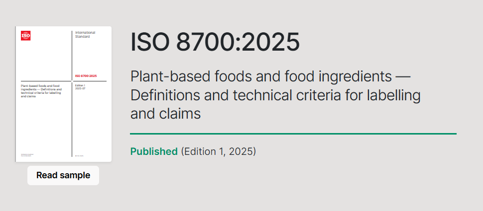 ISO(国際標準化機構)は先月、植物由来食品に関する表示規格「ISO 8700:2025」を発表した。