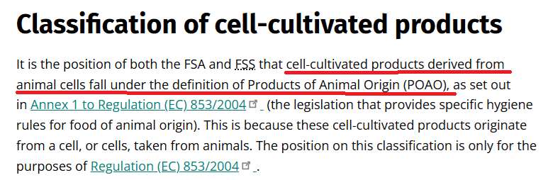 FSAは規制ガイダンスと位置付ける「分類とHACCP原則に関するガイダンス」で、動物細胞由来の細胞性食品を、衛生規則上は「動物由来製品(Products of Animal Origin:POAO)」として取り扱う方針を示した。