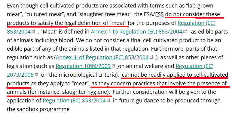一方で、「肉(meat)」の法的定義には含めないとし、動物の存在を前提とする一部の規制については、容易には適用されないとしている。