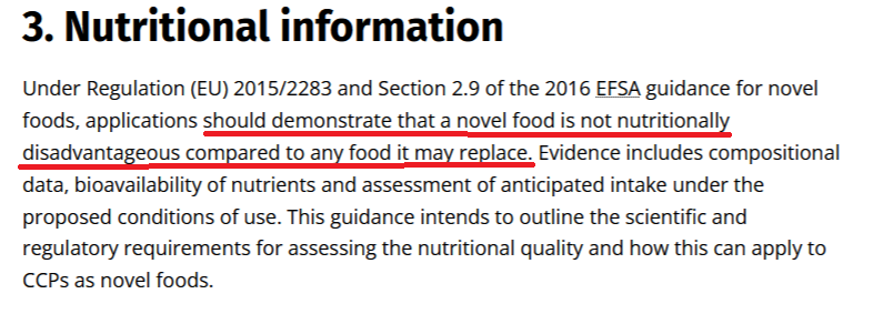 補足的技術ガイダンスの第一弾として公開された「アレルゲン性と栄養(Allergenicity and Nutrition)」は、新規食品申請に際し、当該新規食品が代替対象となる食品と比較して、栄養面で不利にならないことを示す必要性が明記された。申請者は、成分データ、栄養素のバイオアベイラビリティ(生物学的利用能)、意図される使用条件での予想摂取量の評価などのエビデンスを提出することが求められる。