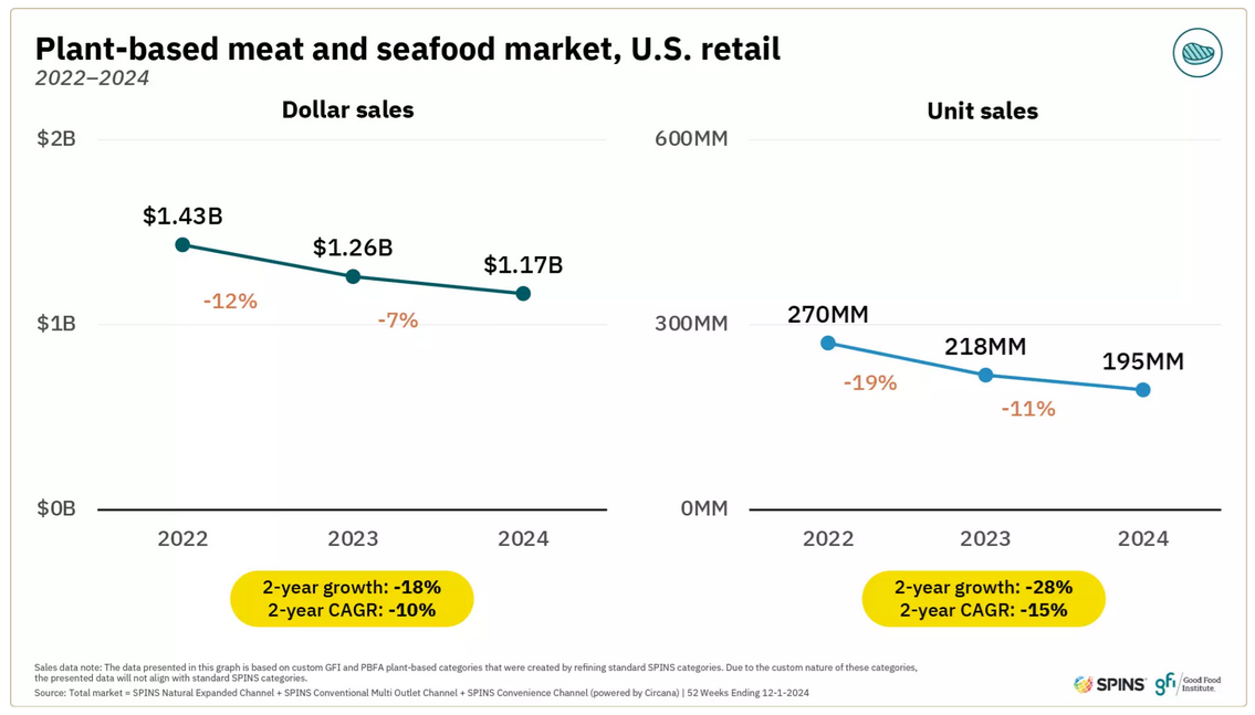 出典:GFI Analyzing plant-based meat & seafood sales(2026年1月11日アクセス)