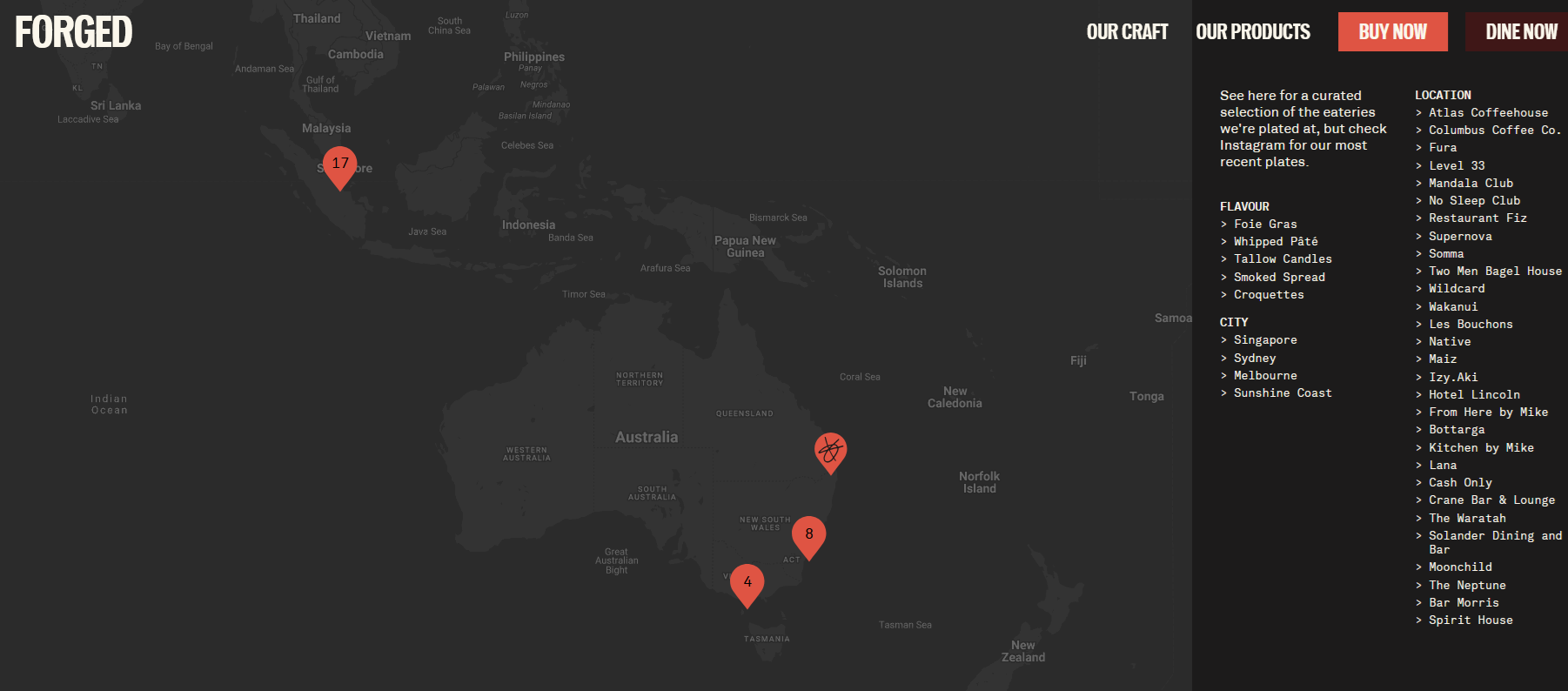 こちらのカフェについては、まずVowのサイトの”DINE NOW”のリンクから、エリアとしてシンガポールを選び、当日アクセスがしやすそうでかつ確実にFORGED製品が食べられそうなお店として選択をした。