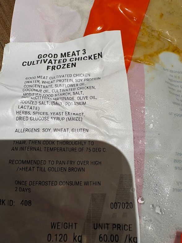 シンガポールでのフードテックの食べ物を実食する旅の中で、滞在2日目にして、ようやくHuber’s Butcheryで細胞性鶏肉「GOOD MEAT 3」を購入して食べることができた。