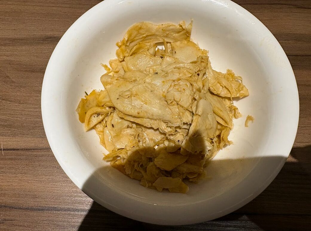 実食してみると、食感および肉片の薄さは湯葉に近く、味そのものはやや物足りない感じはしたものの、私はもともと薄味なので、十分温めただけでも食べられると感じた。
