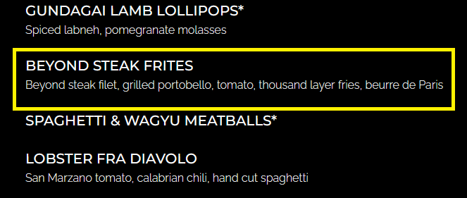 ステーキレストランBOA Steakhouseの5店舗(ウェストハリウッド、サンタモニカ、マンハッタンビーチ、オースティン、ラスベガス)では現在もメニューに掲載されている。