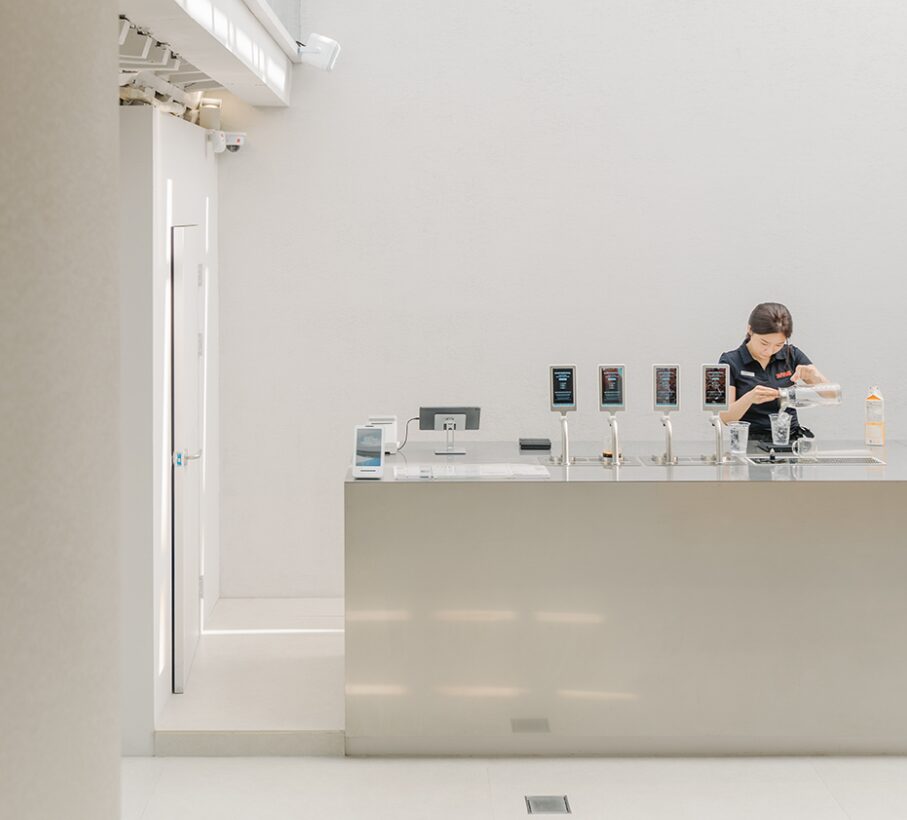 「SANS」はコーヒー豆不使用のため、気候変動によるコーヒー豆の供給不安や価格変動の影響を受けにくい。また、バリスタの技術に頼らずに3秒で抽出できるため、従来のコーヒーショップよりも人件費を30%削減できるという。