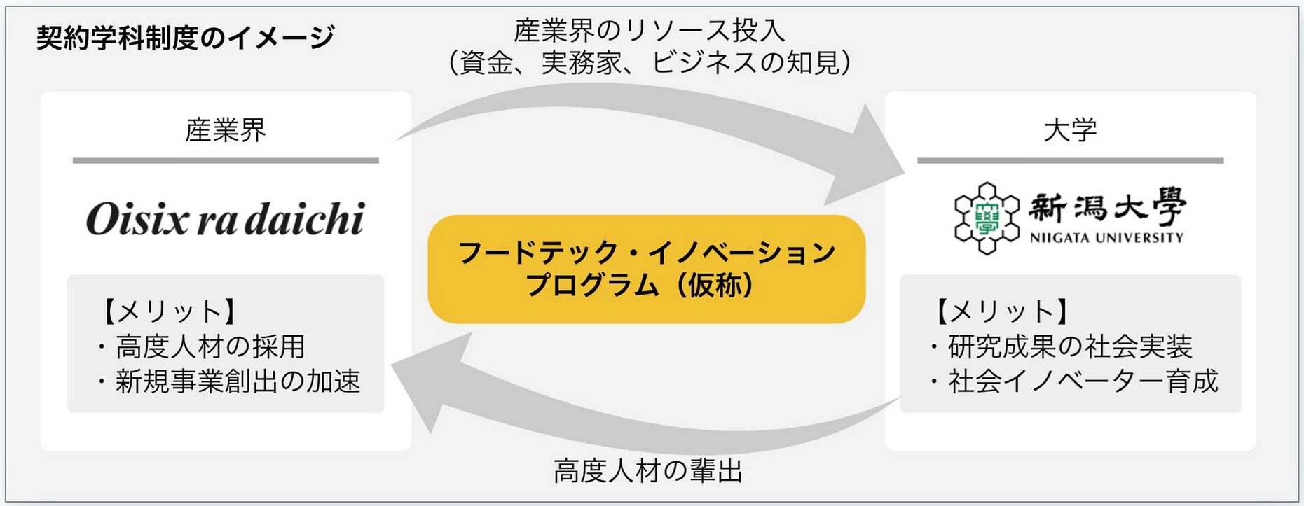 オイシックス・ラ・大地は今月12日、新潟大学と共同で、大学院の新たな学位プログラム「フードテック・イノベーションプログラム(仮称)」の設置準備を始めたと発表した。