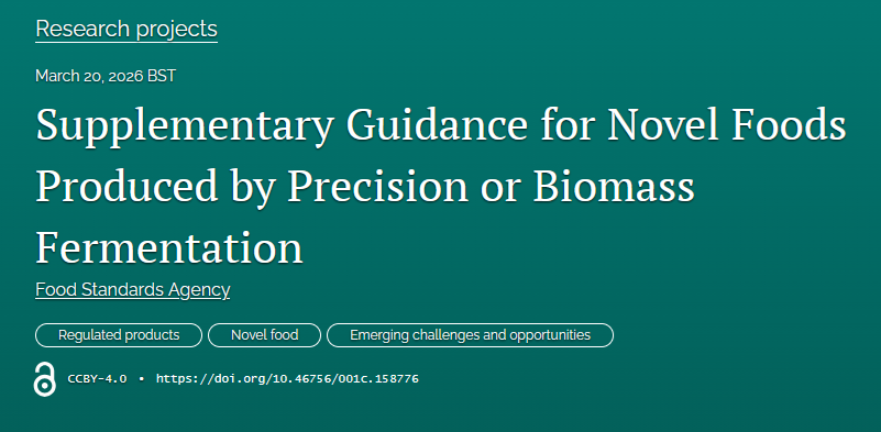 イギリスでは3月20日、FSA/FSSおよびEFSAの新規食品ガイダンスを補完するものとして、精密発酵・バイオマス発酵由来の新規食品に関する補足ガイダンスも公表された。