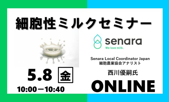 今回は細胞性ミルクの開発を手がけるドイツ企業Senaraの日本市場担当者である西川優嗣氏をお招きし、細胞性ミルクに関するセミナーを開催します。