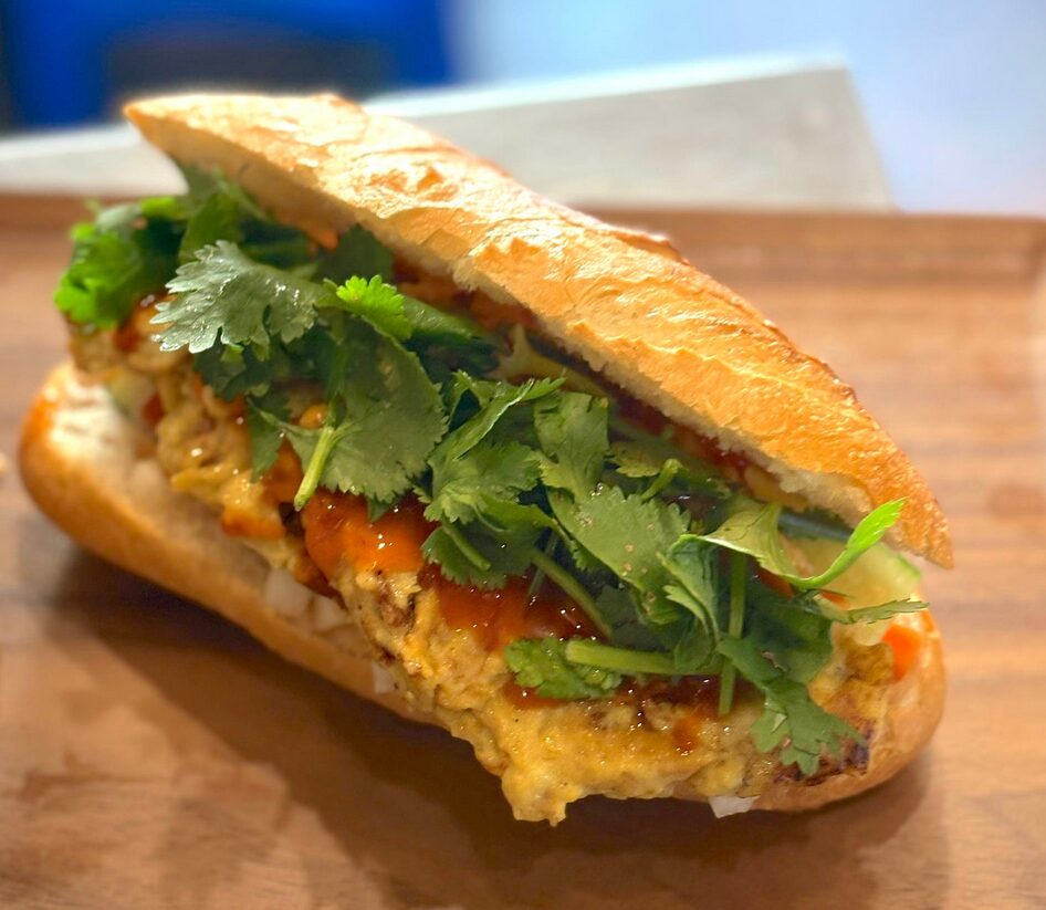 2023年10月にはケンコーマヨネーズと共同開発した「まるでたまごのサラダ」を発売。荒川区の小学校ではアレルゲンフリーのプリンメニューに導入された。昨年12月には、下北沢のベトナム屋台「バインミーバーバー」で、同社素材を使用したメニューとしてヴィーガンエッグバインミー(上記写真)、ヴィーガンプリンが期間限定で発売された。海外でも複数大学での導入実績がある。